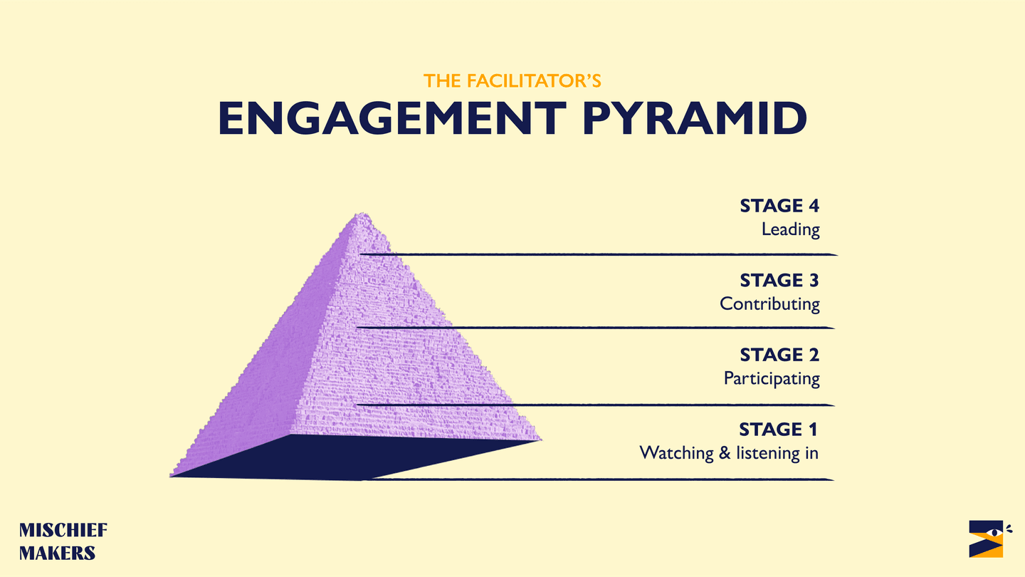 From this experience we have hacked... the Engagement Pyramid*! And turned it into a model specifically to support you in facilitating engaging online sessions.