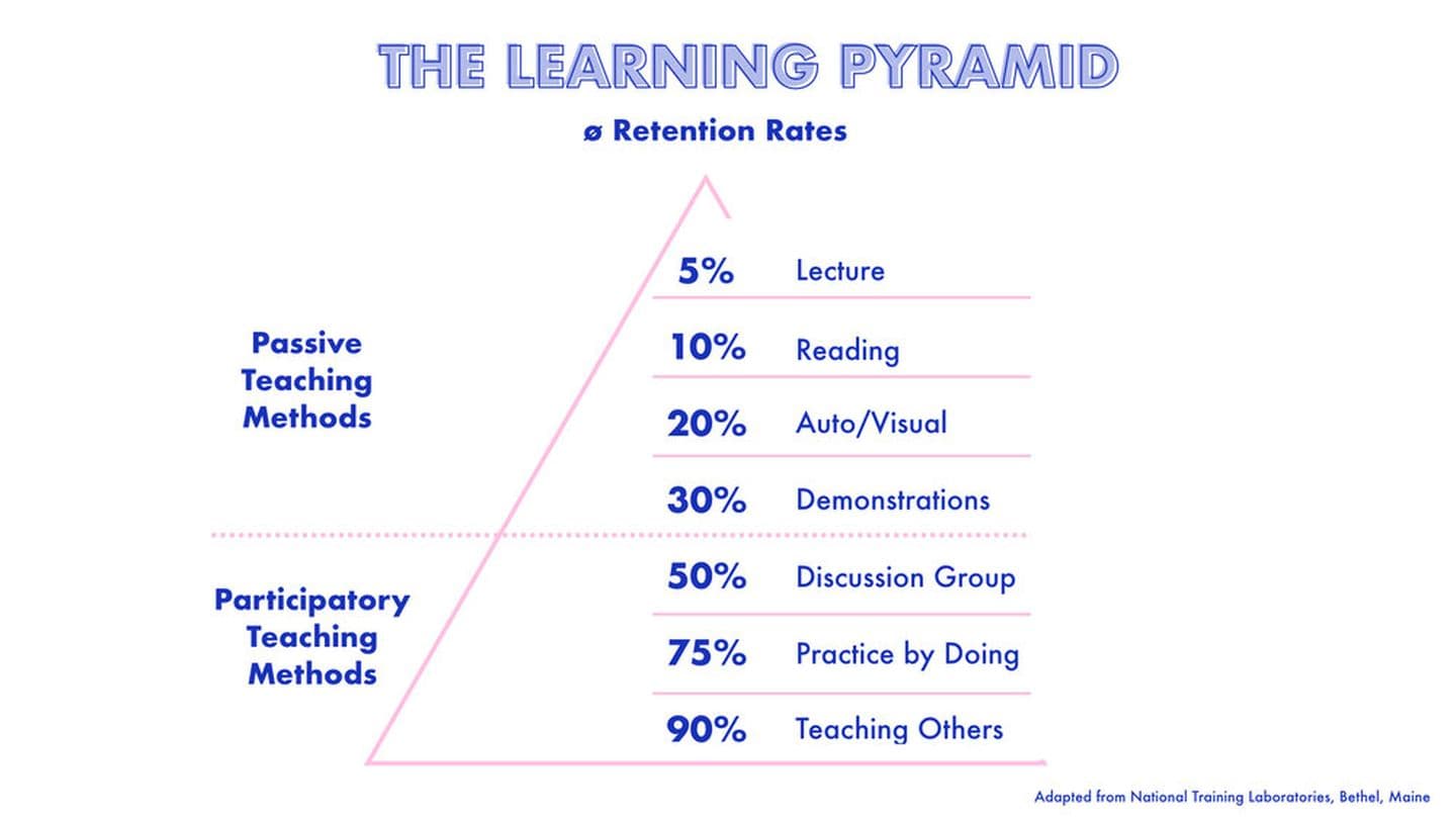 There is no substitute for experience. Therefore ones of the most powerful modes of learning is experience based learning as outlined in the learning pyramid (see below).