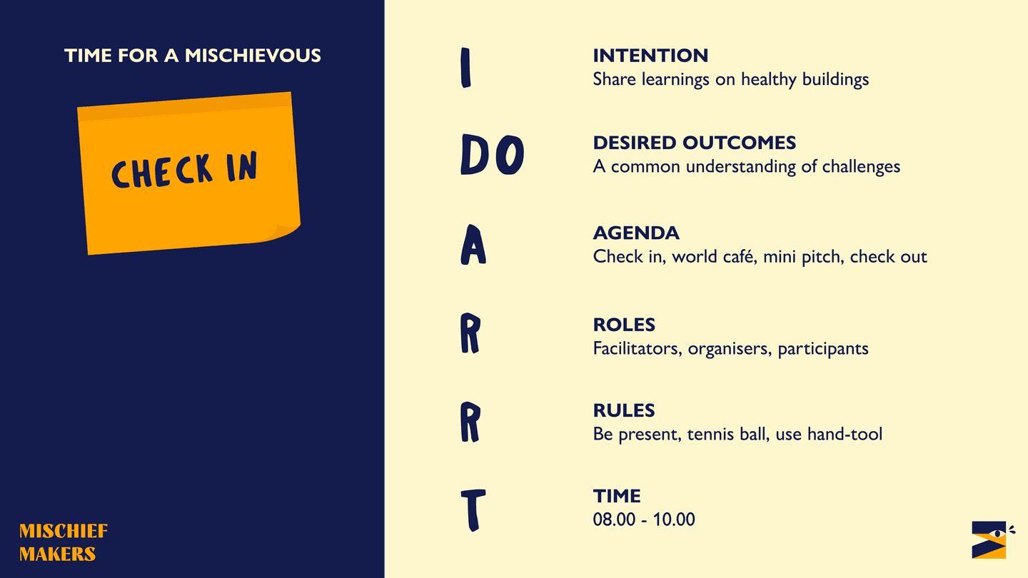 An “IDOARRT” also gives participants a chance to contribute, to raise any requests, concerns or additions to the plan. It enables you to clarify all assumptions before the meeting and build a common agreement that fits the needs and expectations of everyone.